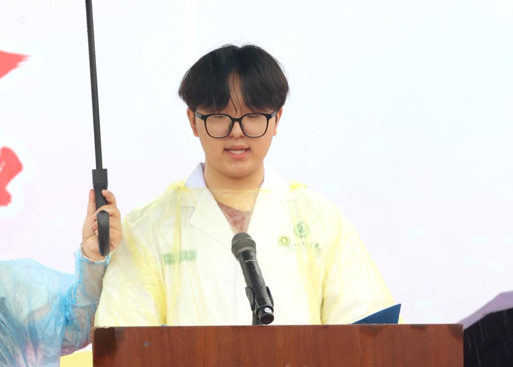 语言文化学院2024级翻译专硕研究生张冬雪同学代表研究生发言,他表示,作为右医学子,要始终将“大医精诚”校训作为立身立学的准则,发扬“艰苦创业,自强不息”的右医精神,严格要求自己,始终保持谦虚、勤奋、不骄不躁的心态,努力提高自身的科学研究能力,勇敢追梦,不负时代,不负韶华。