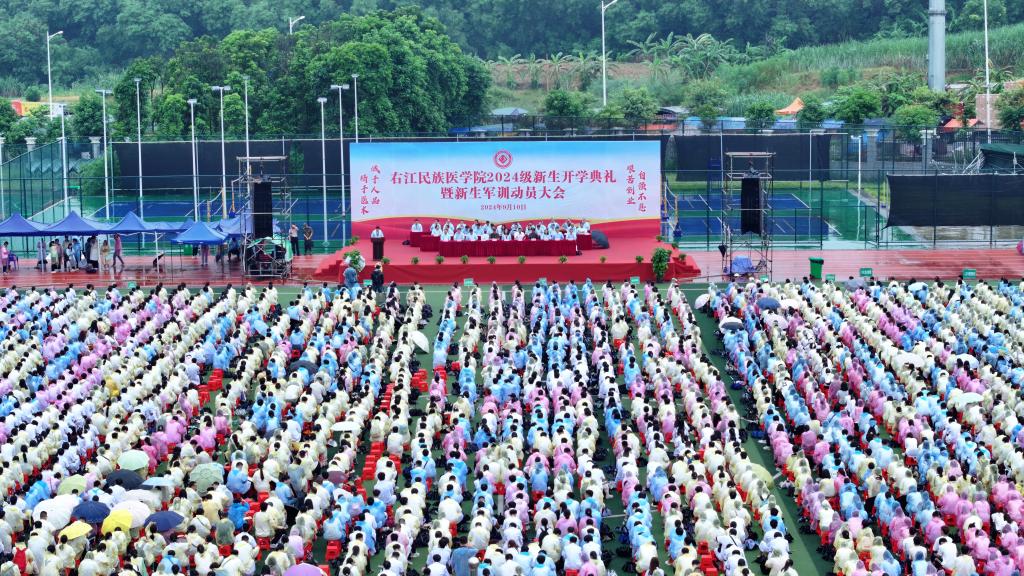 搏击时代浪潮,铸就青春梦想。9月10日上午,在全国上下热烈庆祝第40个教师节的美好日子里,开云kaiyun登录入口在百东校区隆重举行了2024级新生开学典礼暨新生军训动员大会。3000多名右医新学子齐聚田径场,尽管阴雨绵绵,但新生们依旧感受到了右医的热情,一场雨中的开学典礼,也成为了师生间的双向奔赴。