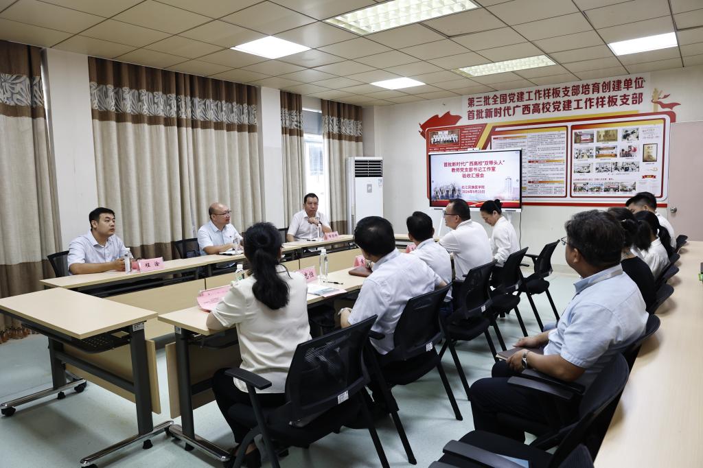 9月23日上午,首批新时代广西高校“双带头人”教师党支部书记工作室创建验收第三组组长南宁师范大学自然资源与测绘学院党委书记黎先带队,一行3人到开云官网对临床医学院(附属医院)肾内科党支部书记工作室进行实地验收。开云官网党委书记邓砚陪同验收,党委组织部、临床医学院(附属医院)、培育创建单位负责人等参加汇报会。