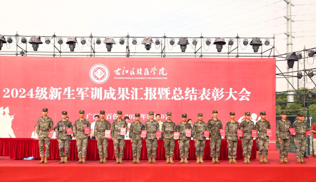 赵丽娟代表学校党政领导班子向出席大会的武警百色支队领导表示热烈的欢迎,向奋战在军训一线的全体教官表示衷心的感谢!向圆满完成各项军训任务的全体参训同学致以诚挚的问候。她希望同学们一是要坚定理想信念,厚植家国情怀。坚定“听党话、跟党走”的政治信念,勤学善思,刻苦钻研,精于医术,诚于人品,肩负起救死扶伤的重任,在涵养家国情怀、砥砺前行的过程中描绘亮丽的青春底色。二是要弘扬军训精神,锤炼品德修为。把军训成果转化为优良的校风、学风和班风,严格规范自身言行,自觉遵守校规校纪,养成良好的学习和行为习惯,成为红色基因和右医精神的优秀传承人,在右医成就最青春最美好的自己。三是要保持勤学奋进,勇于实践创新。把学习作为首要任务多读书,读好书,以“精医术、懂人文、有理想、能创新”的“大医”为目标,秉承“大医精诚”的校训,弘扬“艰苦奋斗、自强不息”的右医精神,做正青春、有志向、知奋进、担重担的“硬核青年”,在实现中华民族伟大复兴的中国梦的赛道上奋力奔跑,让青春在全面建设社会主义现代化国家的火热实践中绽放绚丽之花。
