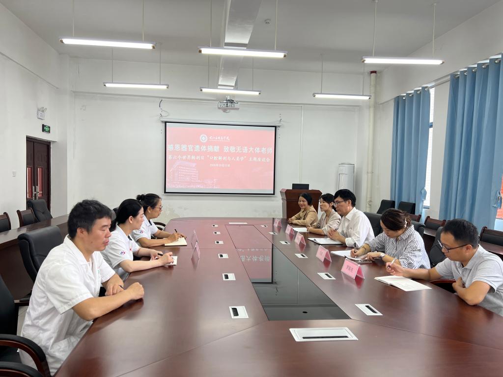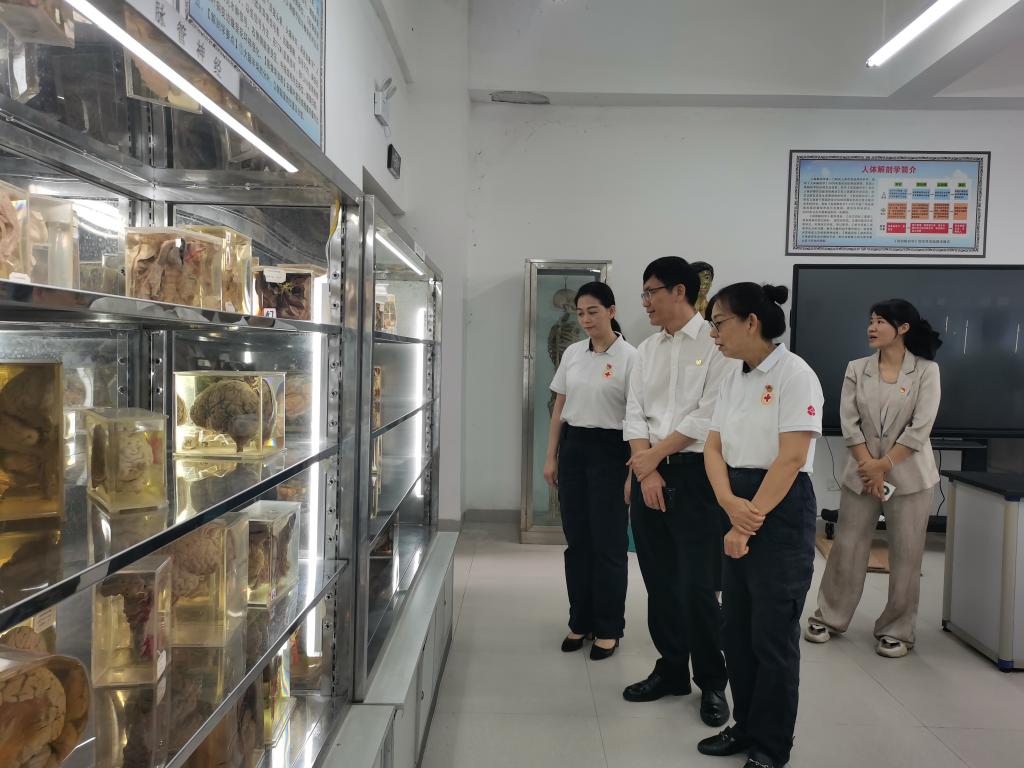 活动结束后,在基础医学院、教务处相关负责人陪同下,解继胜副校长到人体解剖学实验教学中心指导解剖学实验教学工作,并与百色市红十字会开展座谈会,就遗体捐献和实验室建设工作进行交流学习。