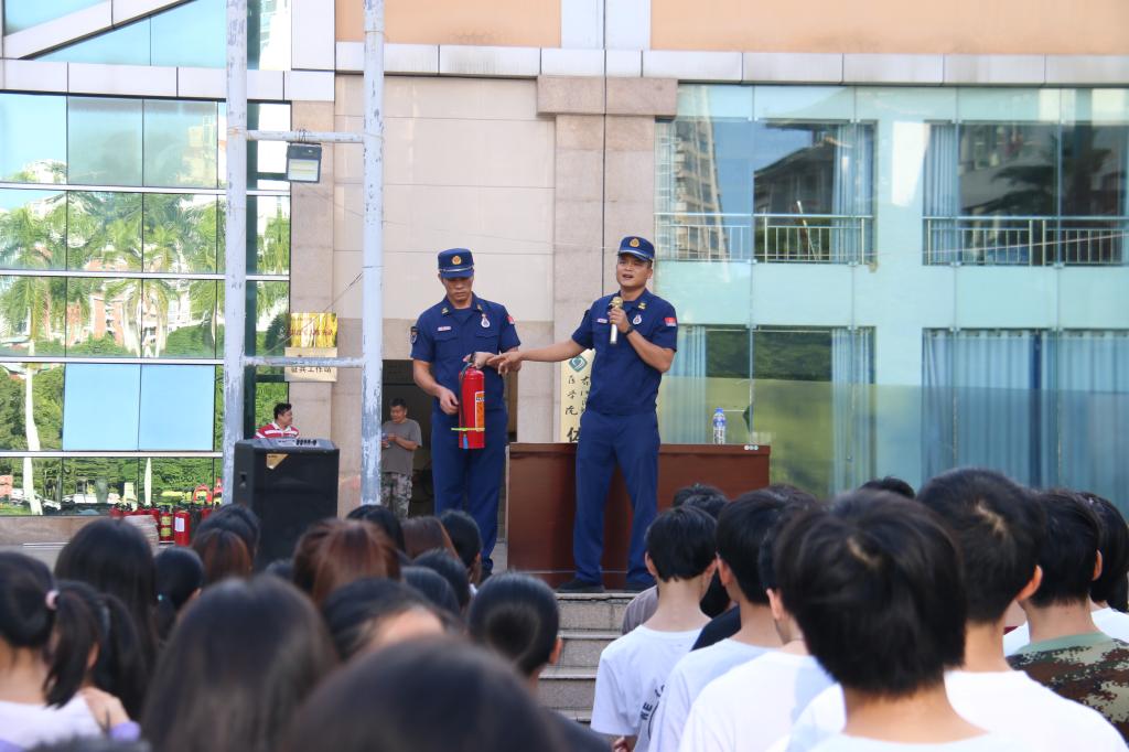 在培训会上,百色市消防救援大队红城消防站站长攀海峰结合实际火灾案例,为同学们进行防火常识、灭火常识、消防法律法规知识的讲解,并现场演示了灭火器和消防栓等消防器材的正确使用流程。同学们基本掌握了灭火器的使用方法,对消防设备有了更直观的了解,积极参与灭火实战演练。