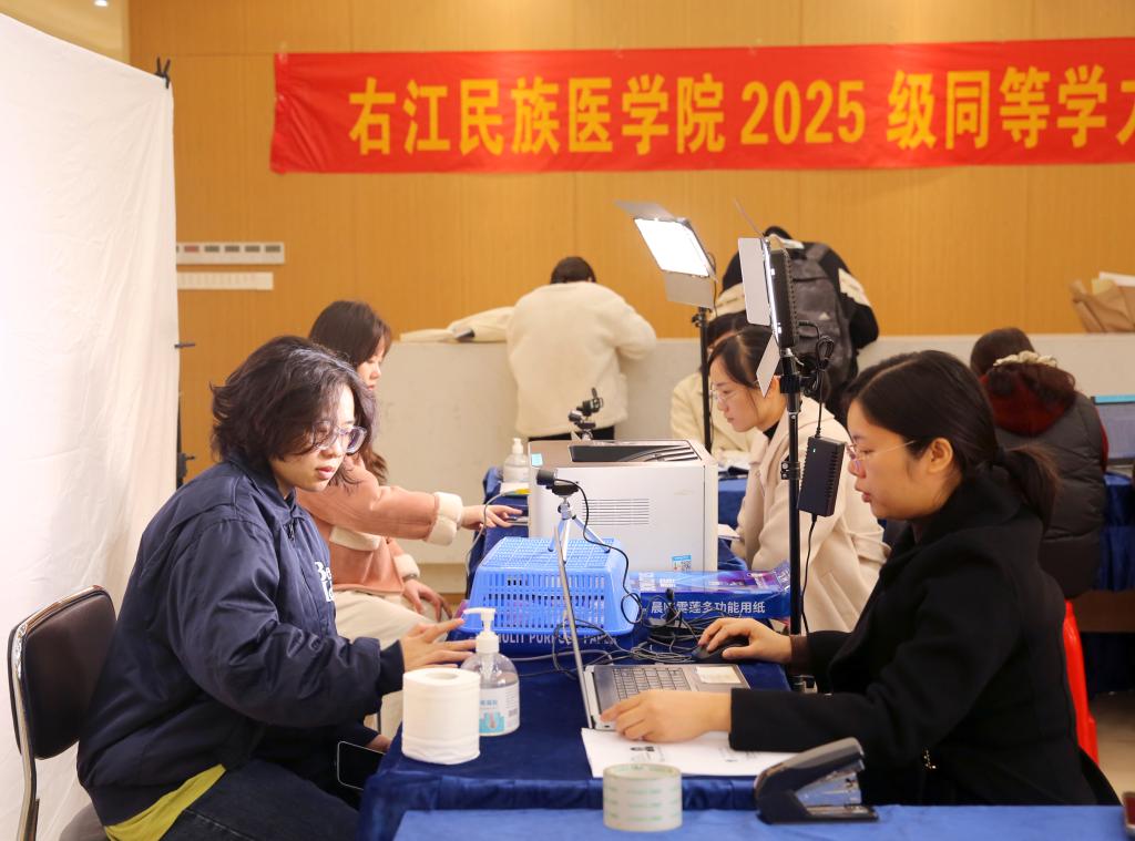 11月30日,开云官网开展2025年在职人员(含规培生)以同等学力申请临床医学和口腔医学硕士专业学位报名现场确认工作。图为老师在审核学员报名材料。