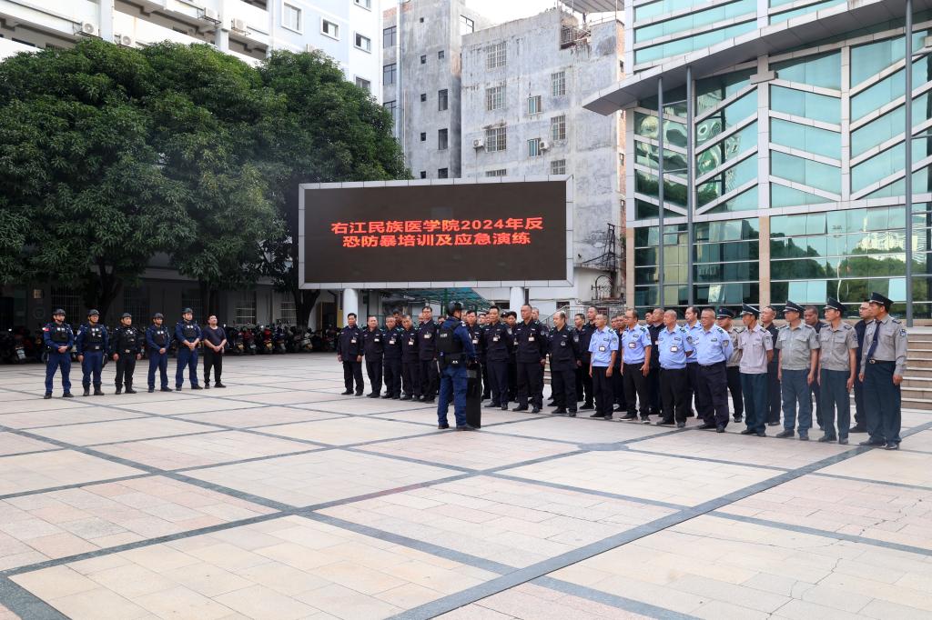 12月4日,我校在百城校区体育广场举行2024年反恐防暴应急培训及演练,旨在进一步增强高校师生的反恐防暴意识,提高应对突发事件的能力,保障校园安全稳定。学校党委武装部(保卫处)相关负责人及校卫队,百色市公安局右江分局反恐怖和巡逻警察大队相关负责人及民警参加培训。