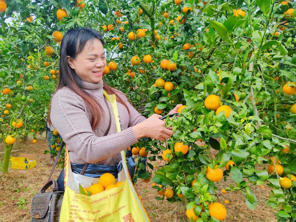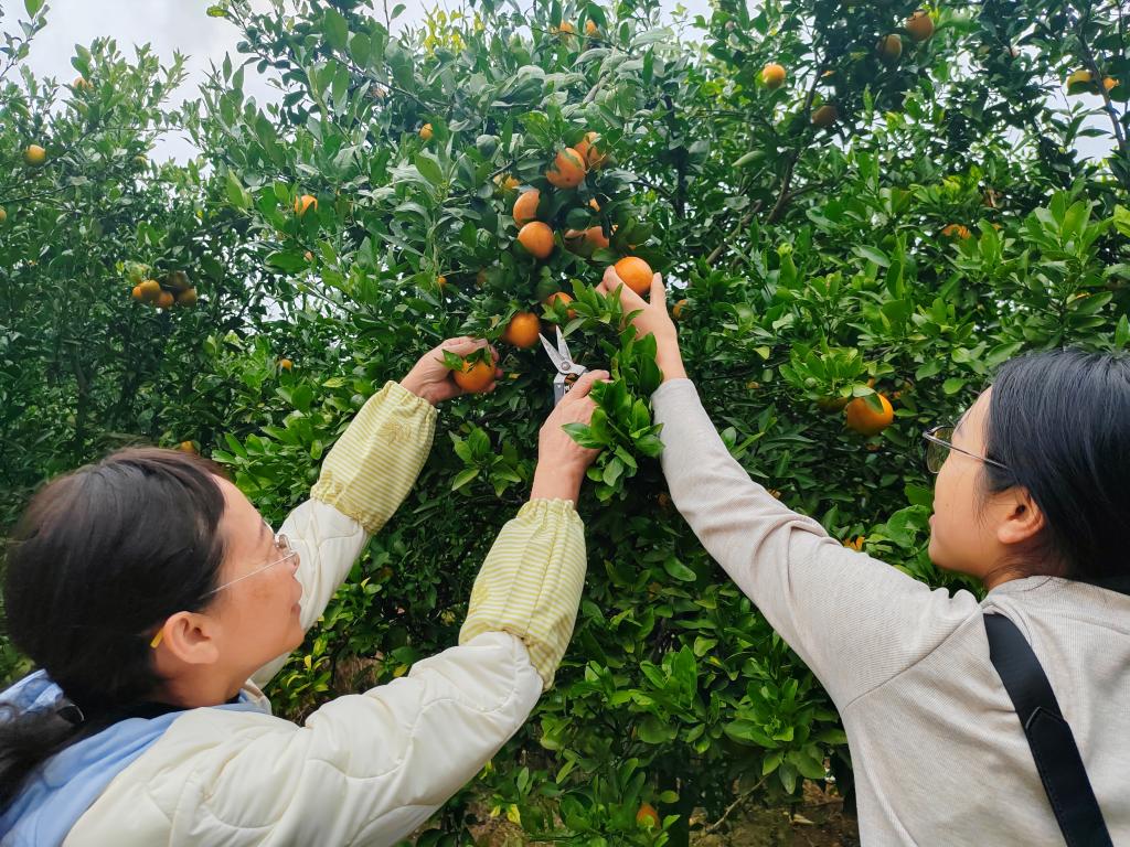教职工正在采摘皇帝柑。