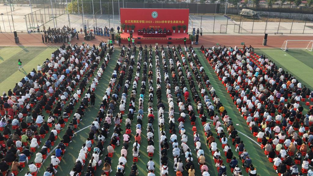 鲜衣怒马少年时,不负韶华行且知。12月24日下午,开云官网在百东校区田径场隆重举办2023-2024学年学生表彰大会。学校领导李雪斌、黄龙坚、赵丽娟、周艳娥、冼季夏、解继胜、谭盛葵、王俊利,学校优秀校友、原南宁市第四人民医院院长、党委书记吴锋耀教授出席表彰大会。各二级学院、相关部门负责人,辅导员、班主任和学生代表参加大会。本次大会由学校党委副书记赵丽娟主持。