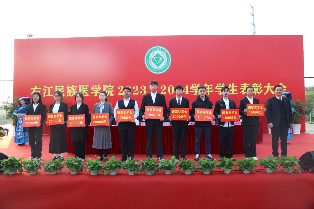 表彰大会在庄严的国歌声中拉开帷幕,全体师生起立,齐唱国歌,那激昂的旋律在会场上空回荡,彰显着师生们的爱国情怀和对学校的深厚热爱。党委副书记、校长黄龙坚,党委副书记赵丽娟,党委常委、副校长解继胜分别宣读表彰文件,与会校领导为获得国家奖学金、国家励志奖学金、自治区人民政府奖学金、校长奖学金、研究生学业奖学金、筑梦奖学金、校级先进班集体、校级优秀学生干部、校级三好学生暨优秀学生奖学金、先进个人的个人与集体进行颁奖。