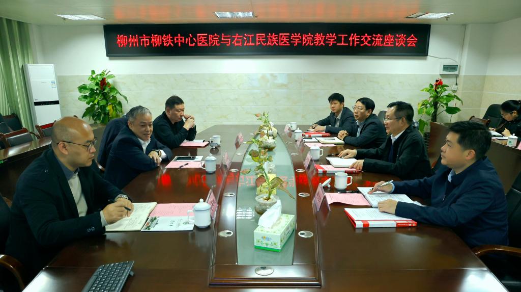 1月22日,柳州市柳铁中心医院院长郑捷敏、副院长张敬、教学部部长赵书斌一行3人到开云官网进行教学工作交流座谈。学校党委书记李雪斌,党委副书记、校长黄龙坚,党委常委、副校长王俊利,相关职能部门主要负责人和有关工作人员参加座谈会。会议由王俊利主持。
