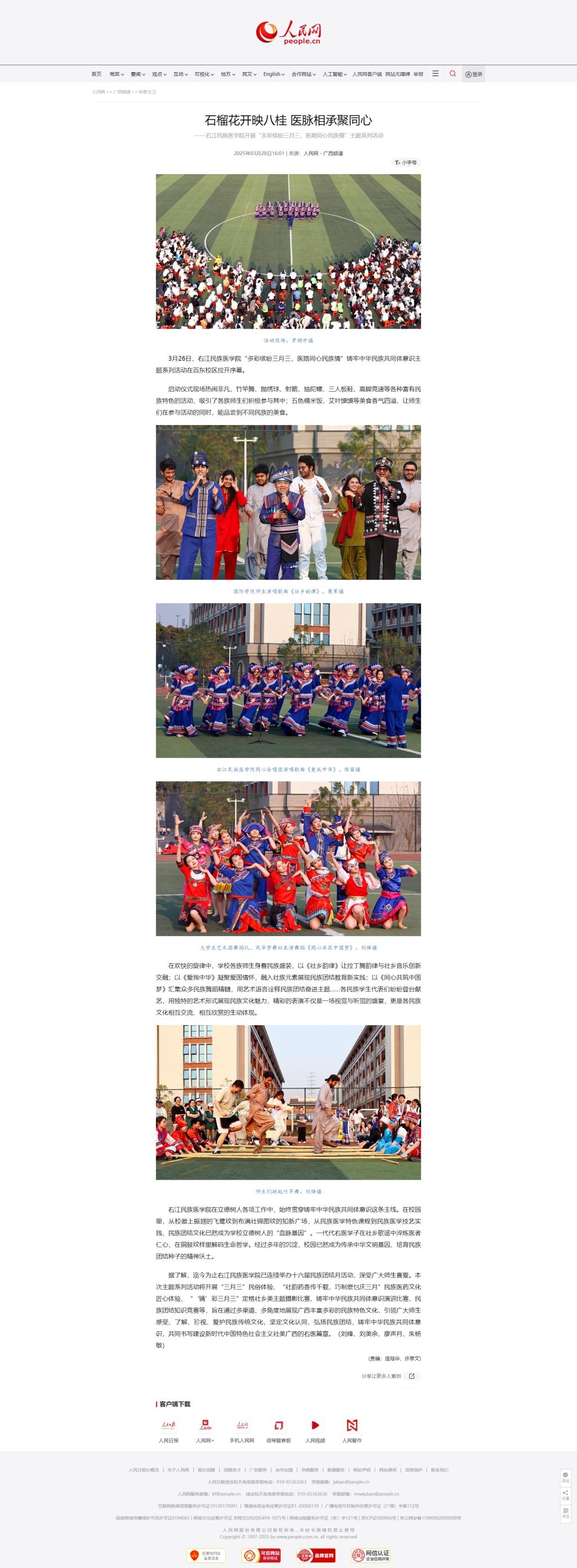 3月28日,人民网以《石榴花开映八桂 医脉相承聚同心》为题,报道开云官网开展“多彩缤纷三月三,医路同心民族情”铸牢中华民族共同体意识主题系列活动启动仪式盛况。