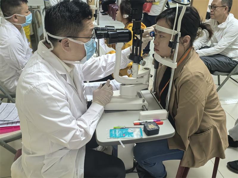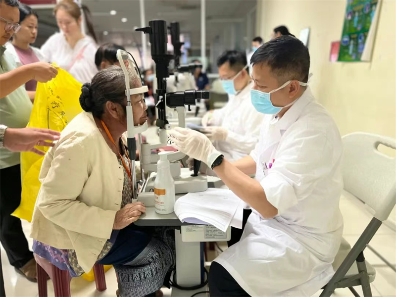 临床医学院(附属医院)眼科医疗队队员为当地患者检查眼睛