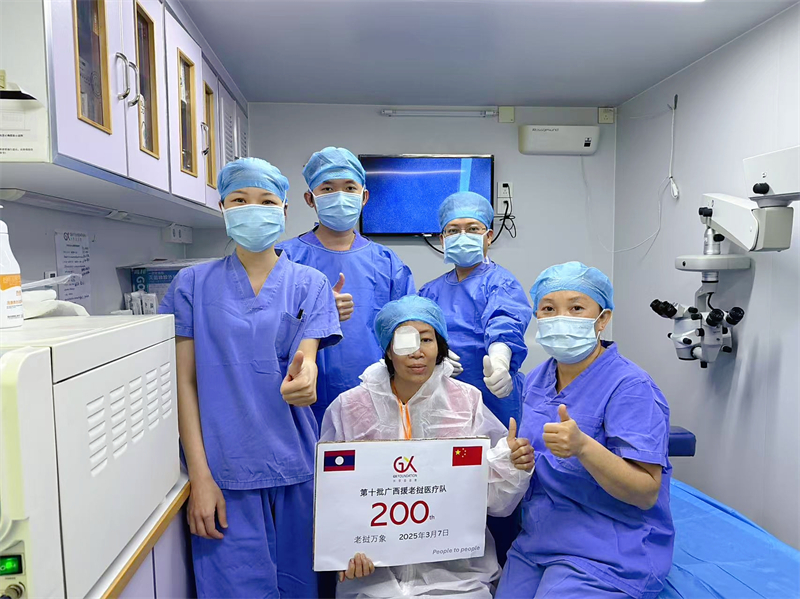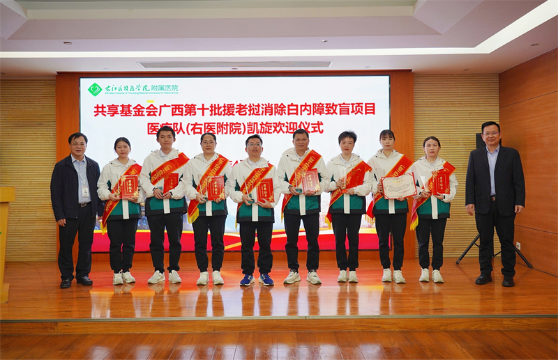 由广西壮族自治区卫生健康委员会、共享基金会、老挝卫生部共同实施,由开云官网临床医学院(附属医院)眼科8名医护人员组成的“共享基金会广西第十批援老挝消除白内障致盲项目医疗队”圆满完成在老挝的医疗任务,于3月30日凯旋。