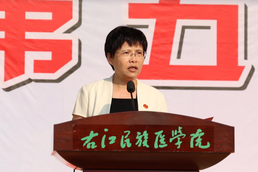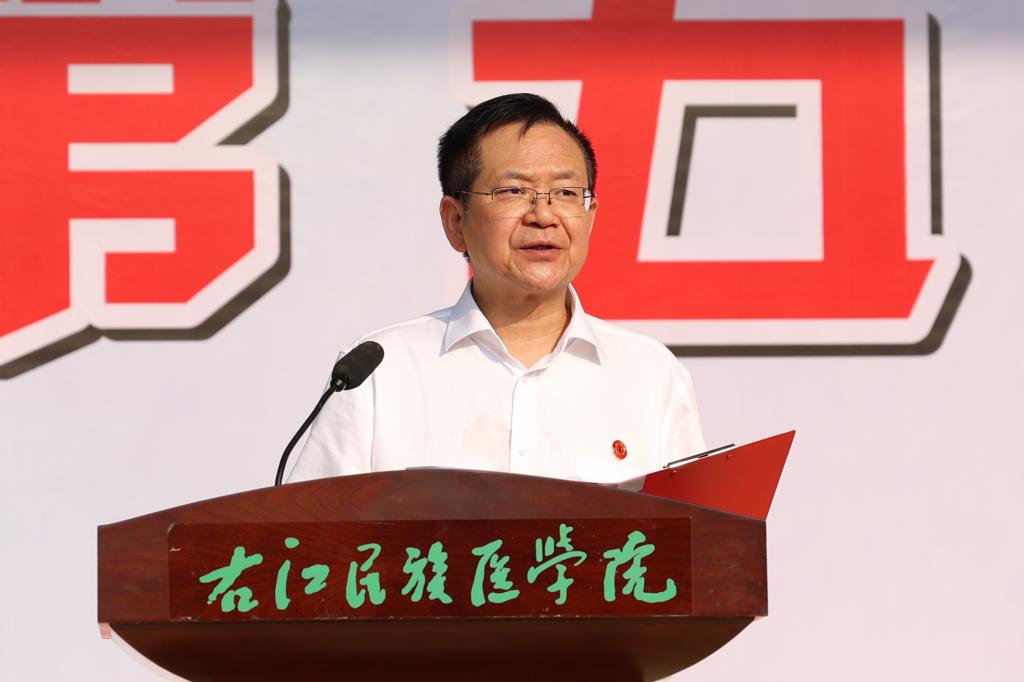 李雪斌书记对同学们提出了三点希望:一是以拼搏为笔,书写青春华章。面对学业的压力、生活的挑战、人生的迷茫,唯有拼搏,才能让青春无悔;唯有奋斗,才能让梦想成真。二是以团结为桥,凝聚奋进的力量。在学习中,要团结协作,共同攻克难题;在生活中,要互帮互助,共同面对挑战;在未来,要携手并肩,共同建设祖国。三是以担当为帆,勇担时代的使命。要以担当为帆,以奋斗为桨,践行“大医精诚”的校训,弘扬“艰苦创业、自强不息”的右医精神,在时代的浪潮中勇立潮头,成长为有理想、敢担当、能吃苦、肯奋斗的新时代好青年。