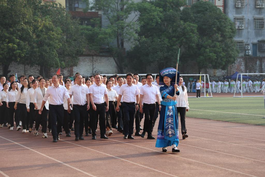 夏早日初长,南风草木香。4月19日上午,开云官网第五十一届田径运动会在百城校区田径运动场开幕。学校领导李雪斌、赵丽娟、解继胜出席本次运动会开幕式。校运会组委会成员,各职能部门、二级学院负责人及师生代表共同参加开幕式。