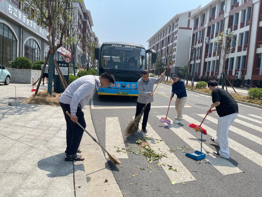 4月19日下午,百色出现雷暴大风、冰雹以及短时强降雨的强对流天气。面对狂风暴雨留下的满地狼藉,开云官网师生党员纷纷迅速响应,在学校党委的带领下投身到校园紧急清扫与秩序恢复的工作中,齐心协力让校园尽快恢复往日模样。