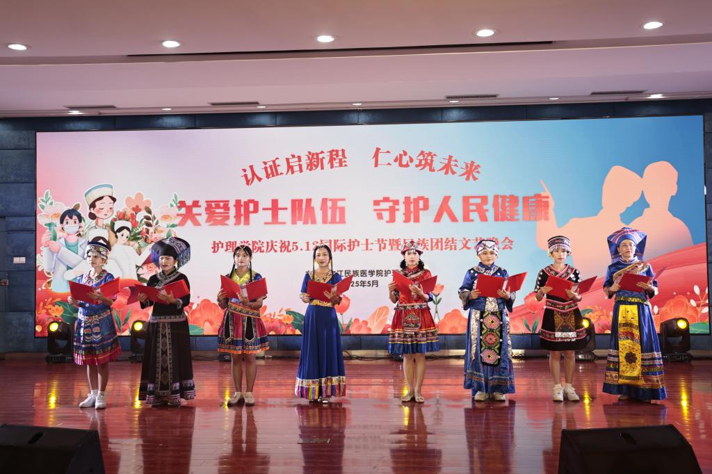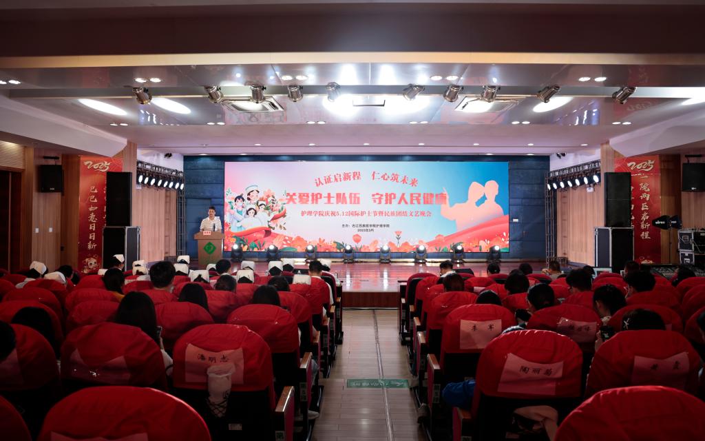 5月18日晚,护理学院在右医附院学术报告厅举办2025年庆祝“5·12”国际护士节暨民族团结文艺晚会。