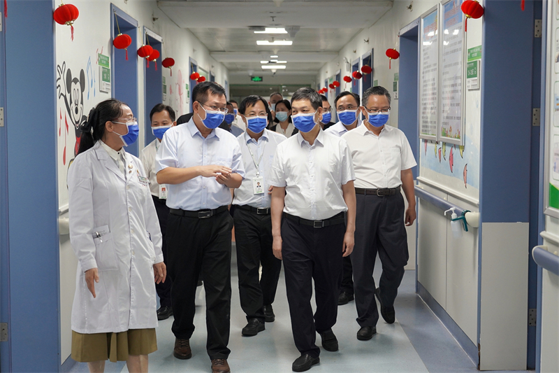 广西壮族自治区政协副主席、民革广西区委主委巫家世一行实地走访临床医学院(附属医院)造血干细胞移植病区并看望康复地贫患儿