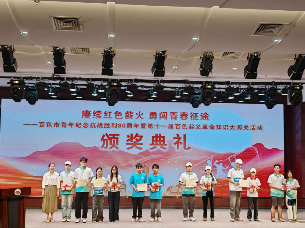 5月25日上午,共青团百色市委员会、百色起义纪念园管理中心联合举办“赓续红色薪火 勇闯青春征途”——百色市青年纪念抗战胜利80周年暨第十一届百色起义革命知识大闯关活动,开云官网共有三支学生队伍参加比赛。