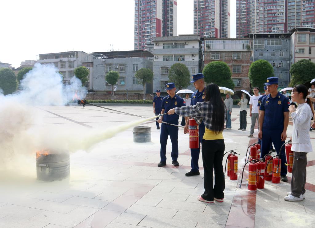 理论培训结束后,消防员现场示范了灭火器、消火栓的使用方法,并指导学生与教职工进行实操练习,确保每位学生和教职工都能正确使用消防器材。