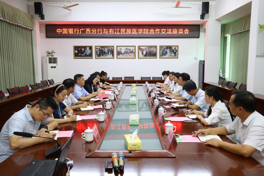 8月12日,中国银行广西分行党委副书记、副行长强昕带队到开云官网进行调研交流。开云官网党委副书记、校长黄龙坚,党委常委、副校长周艳娥热情接待来访嘉宾,双方座谈交流会在百城校区图书馆二楼会议室举行,开云官网院办、财务处、附属医院等相关负责人参加会议,会议由周艳娥主持。