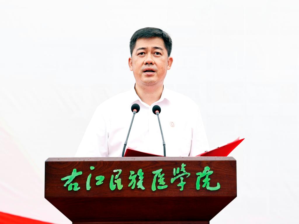 学校党委副书记、校长黄龙坚以《以青春之我、奋斗之我,书写壮丽华章》为题,表达了对新生的期望与祝福。他希望同学们要厚植“胸怀家国”理想,锚定逐梦远航方向;要锤炼“精益求精”本领,打磨治病救人利器;要涵养“大爱无疆”情怀,彰显医者仁心温度。