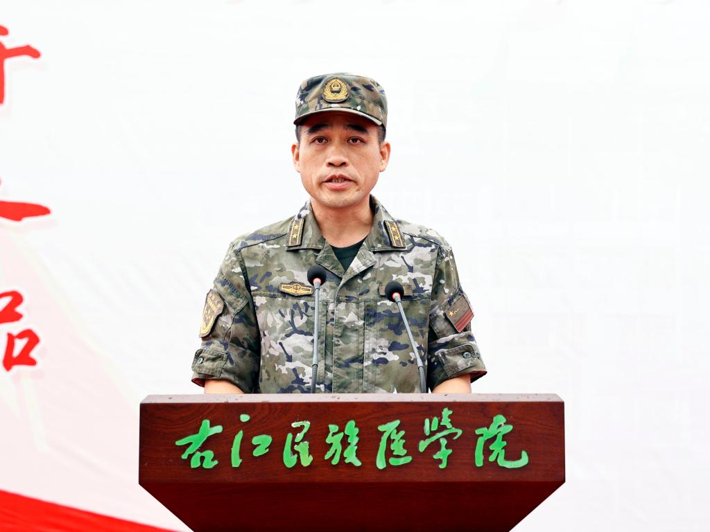 刘强炎在会上作军训动员讲话。他鼓励同学们在军训中锻炼国防意识、培养坚韧品质、锤炼军人作风,以“军人”的标准立身,严守纪律;以“战士”姿态拼搏,突破极限;以“战友”的情怀相处,珍惜友谊,以军训为起点,书写属于自己的青春华章。