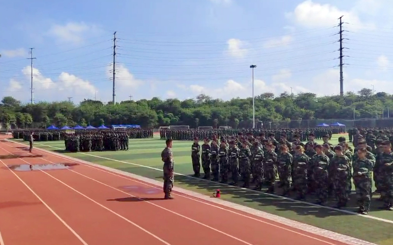 上午10时,在百城校区和百东校区的田径场上,2900余名身着迷彩服的新生与教官整齐列队。随着百色市防空警报声划破长空,全场脱帽低头,气氛凝重。默哀期间,操场上仅余风声与警报声回荡,不少学生紧抿嘴唇,眼中泛起泪光。