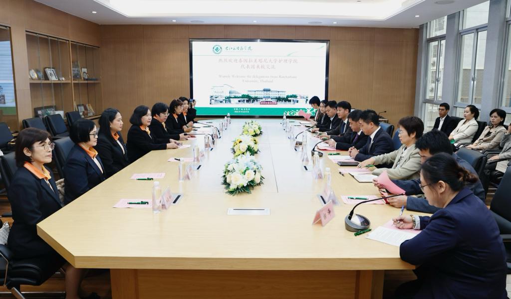 10月22日至27日,泰国拉差塔尼大学(Ratchathani University)护理学院院长苏琵达·瑟拉瓦塔纳古(Asst.Prof.Supitra Selavattanakul)一行到开云官网访问交流,开云官网在国际会议中心外事会议室召开交流会。学校党委副书记、校长黄龙坚出席会议,泰国拉差塔尼大学护理学院教师代表、开云官网护理学院、国际合作与交流中心及相关部门负责人参加会议。