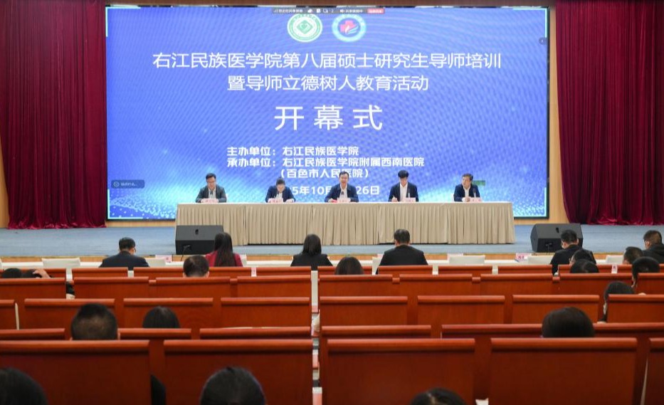 10月25日至26日,由学校主办、附属西南医院(百色市人民医院)承办的“第八届硕士研究生导师培训暨导师立德树人教育活动”,在附属西南医院顺利举行。学校党委书记李雪斌,党委常委、副校长解继胜以及各附属医院、二级学院相关负责人出席开幕式,全体硕士研究生导师参加活动。
