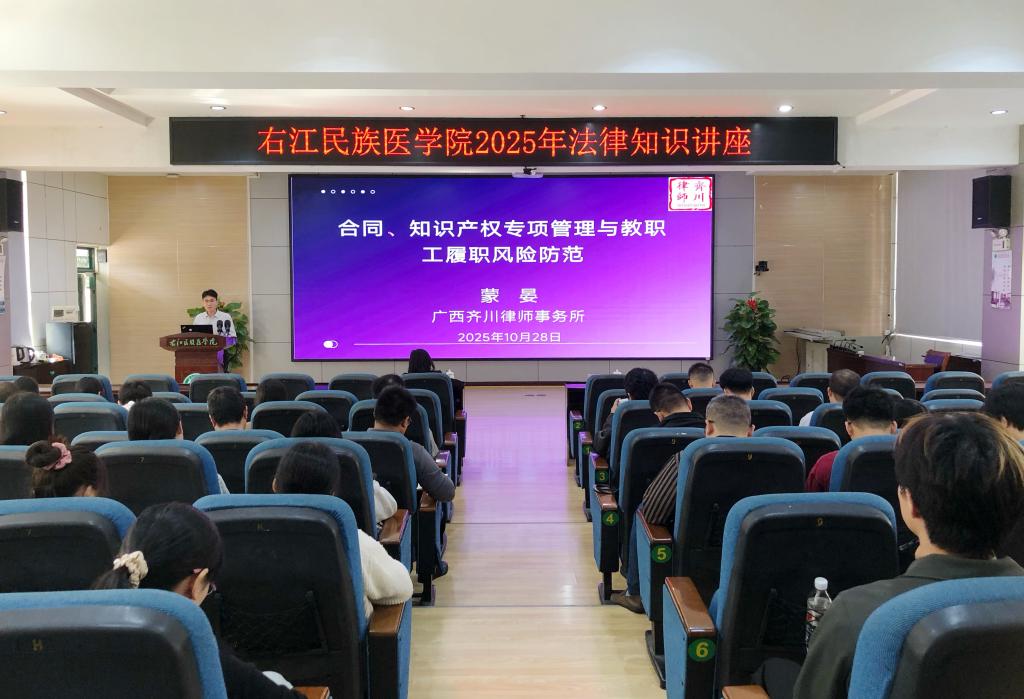 本次讲座聚焦教职工工作实际需求,以“合同、知识产权专项管理与教职工履职风险”为核心培训主题,特别邀请到广西齐川律师事务所蒙晏律师担任主讲嘉宾。蒙晏律师结合教育领域典型案例,从合同订立的核心要素、履行过程中的风险防范、合同纠纷的合法处理途径,到知识产权的界定范围、高校教学科研中的知识产权保护要点、侵权行为的法律后果等方面,进行了系统且深入的讲解。讲座内容既有专业的法律条文解读,又有贴近教职工工作场景的实操指导,有效帮助参会人员厘清了合同与知识产权管理中的认知误区,掌握了关键法律风险点的应对方法。