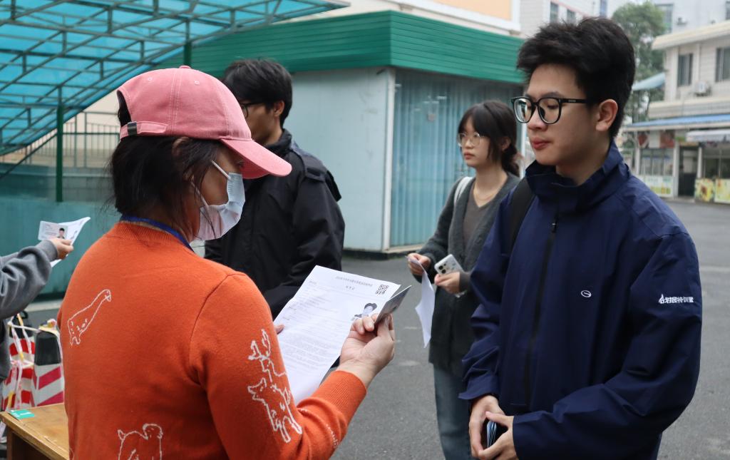 考务人员在检查考生证件。