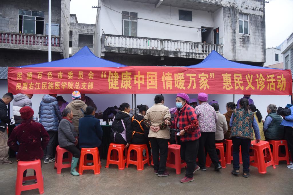 活动期间,民盟百色市委、民盟右医总支部开展惠民义诊。内科、外科、妇科、儿科、中医科、康复科、肿瘤科、营养科等十余位专家现场坐诊,为村民提供免费血压、血糖检测,完成超声检查50多人次,提供个性化用药指导,累计服务群众360余人次,赠送药品合计3000多元。