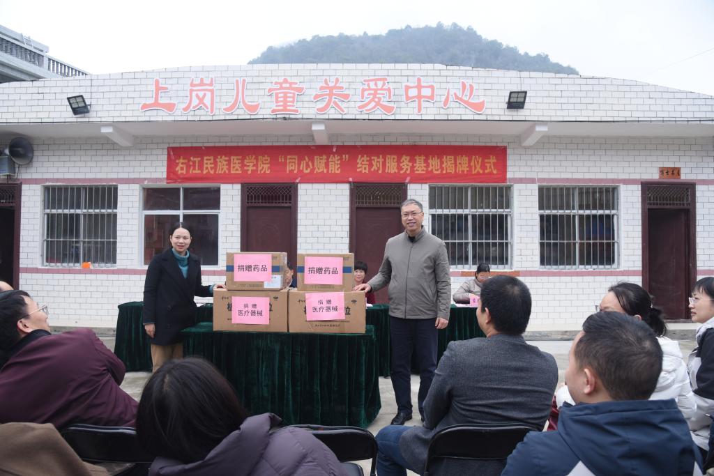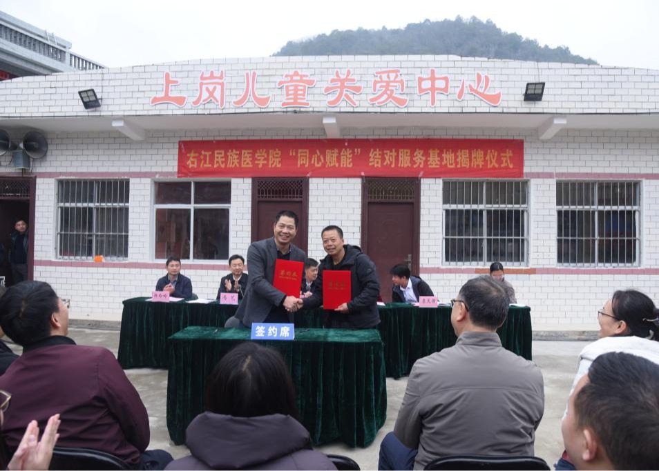 随后,民盟开云kaiyun登录入口总支部与中共乐业县同乐镇上岗村党支部在全体人员的见证下签订结对合作协议,出席活动的领导共同为基地揭牌。附属医院向上岗村卫生室捐赠一批急需的药品及医疗器械,切实提升基层卫生室服务能力。