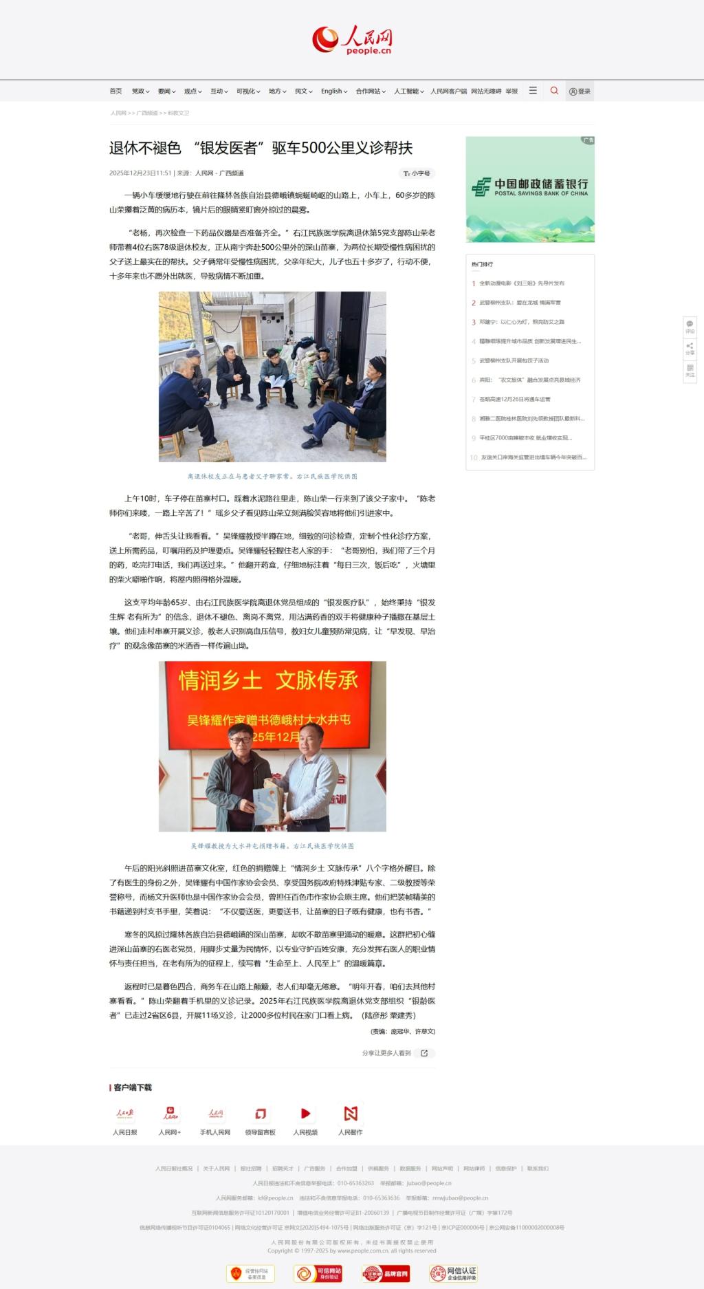 【媒体看右医】人民网:退休不褪色 “银发医者”驱车500公里义诊帮扶
