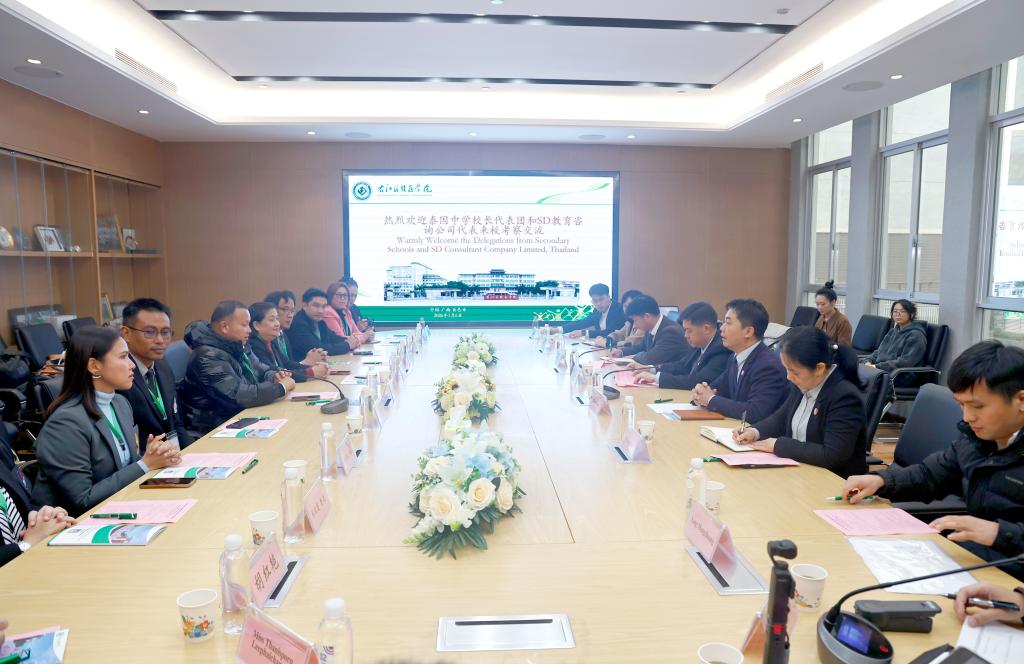1月6日,泰国中学校长代表团及泰国SD国际教育代表团一行到开云官网进行考察交流。开云官网在国际会议中心外事会议室召开交流会。学校党委副书记、校长黄龙坚出席会议,泰国相关中学负责人代表、SD教育咨询公司负责人、国际合作与交流中心相关负责人参加会议。