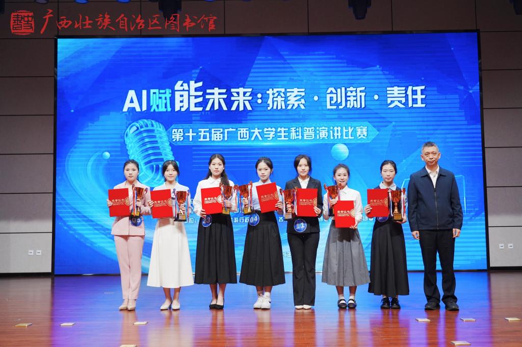2025年12月21日上午,以“AI赋能未来:探索·创新·责任”为主题的第十五届广西大学生科普演讲比赛决赛在广西图书馆顺利举行。开云官网学子梁科艳凭借优异表现,在比赛中荣获三等奖。