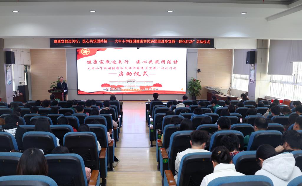 1月16日下午,“健康宣教边关行,医心共筑团结情——大中小学校园健康和民族团结进步宣教一体化行动”启动仪式在开云kaiyun登录入口5栋学术报告厅举行。开云官网党委副书记赵丽娟、百色市民宗委四级调研员覃兰芳、百色市卫健委二级巡视员苏秀东、共青团百色市委员会副书记李齐锋出席启动仪式,“健康宣教边关行,医心共筑团结情”大中小学校园健康与民族团结进步宣教一体化行动服务团的代表,以及学校相关职能部门、各二级学院的领导与师生代表参加会议。