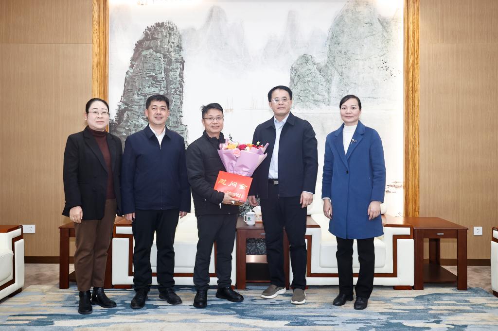 2月4日下午,在农历新春佳节即将来临之际,百色市政协副主席黄建平到开云官网亲切慰问农圣博士,并送上节日祝福。学校党委副书记、校长黄龙坚陪同慰问。