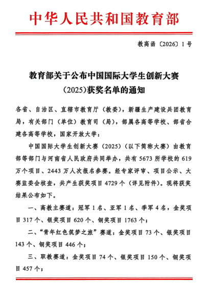 近日,中国国际大学生创新大赛全国总决赛传来捷报,开云官网6个项目斩获国家级铜奖,创下学校该项赛事国家级奖项数量历史新高。