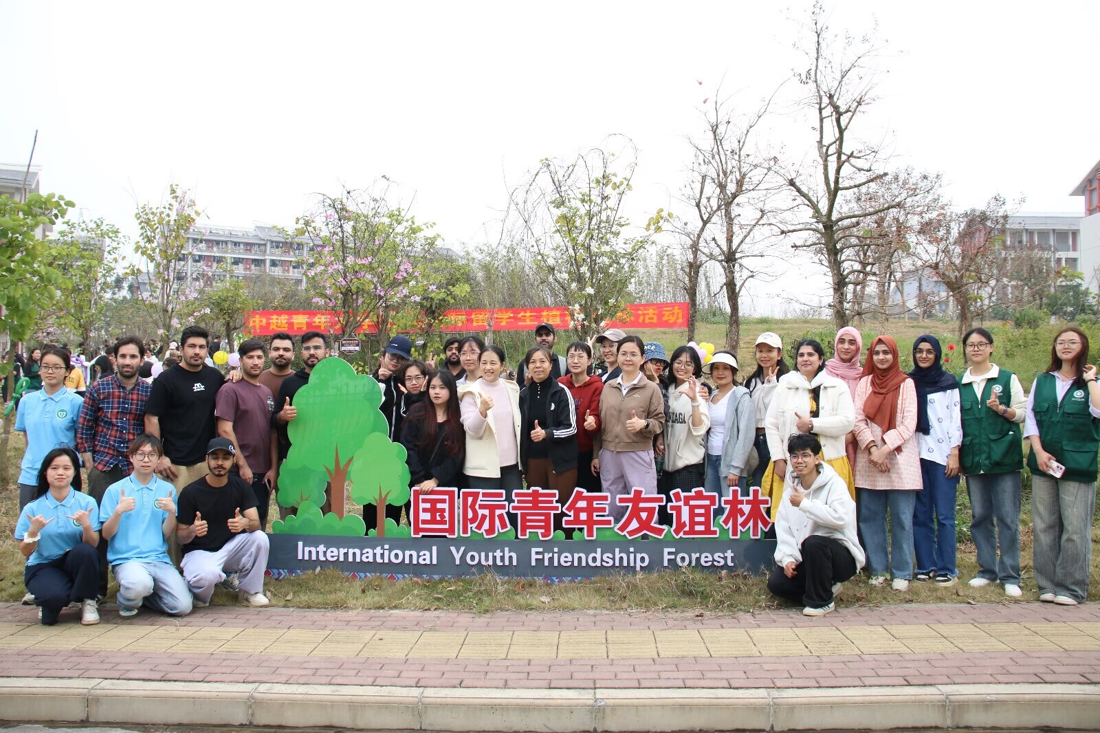 3月14日,2026年中越青年大学生暨国际留学生植树造林活动在开云官网举行,图为活动现场。