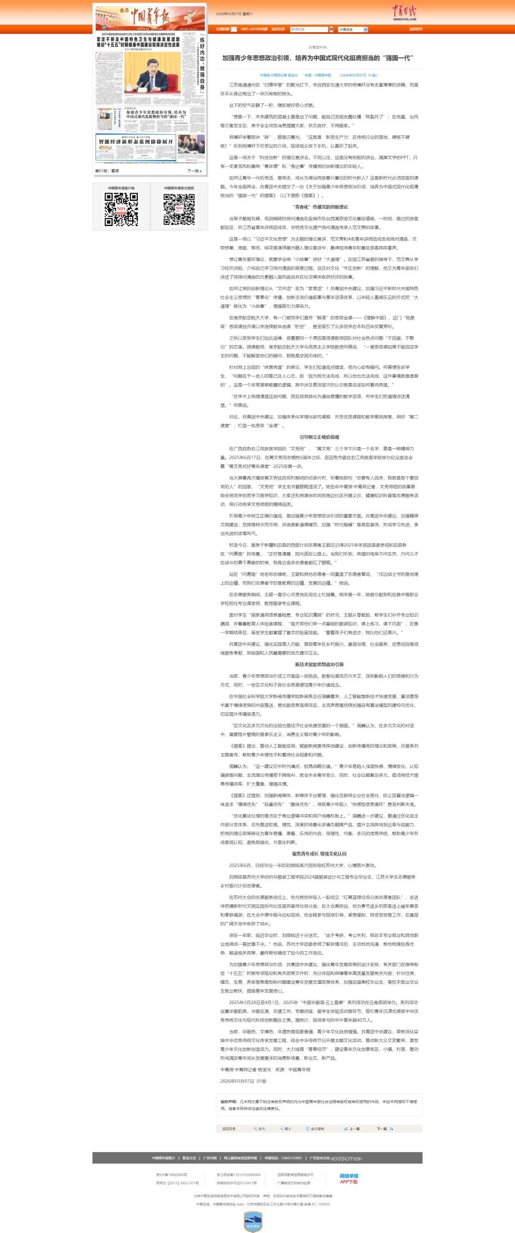 3月7日,在中国青年报报道的题为《加强青少年思想政治引领,培养为中国式现代化挺膺担当的“强国一代”》一文中,报道了开云官网“文秀班”在引导青少年树立正确价值观,加强青少年思想政治引领等方面的实践经验。
