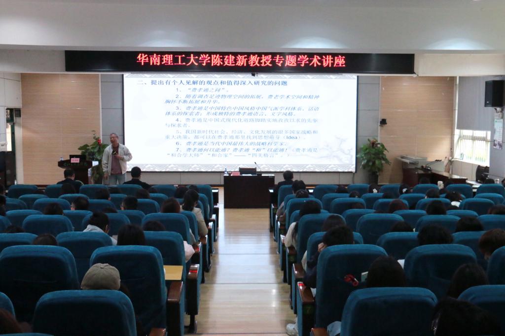 在讲座中,陈建新教授围绕费孝通先生的学术思想与人生历程展开分享,深入阐释了费孝通先生“志在富民”的学术追求与“行行重行行”的田野调查精神,梳理了费孝通先生在社会学、人类学领域的核心贡献,并且结合自身研究经历,讲述了积极传播费孝通学术思想的时代意义与现实价值。陈建新教授的精彩讲解为在场师生理解中国社会发展、开展学术研究提供了全新视角。
