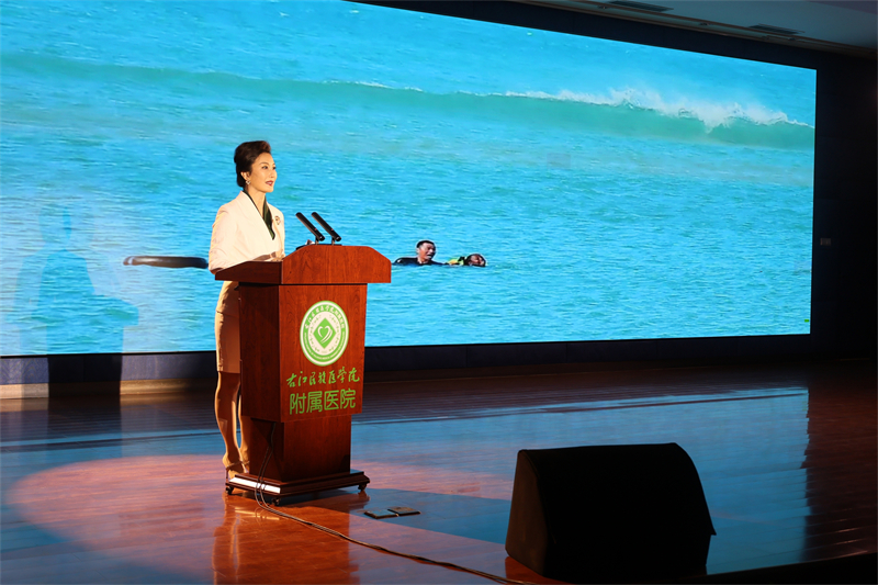 报告会现场播放了专题片《生命至上》,上演了情景对白《心痛的告别》,展播了原创MV《张军桥 一生为救人》,多种形式的文艺展演,将张军桥烈士用一生践行“敬佑生命、救死扶伤、甘于奉献、大爱无疆”职业精神的点滴瞬间,化作跨越时空的精神力量,直击人心。在场的医护人员和医学生们全程神情专注,不少人被烈士的英勇事迹和高尚品格深深打动,潸然泪下,现场掌声数次响起,饱含着对英雄的深切缅怀与崇高敬意。