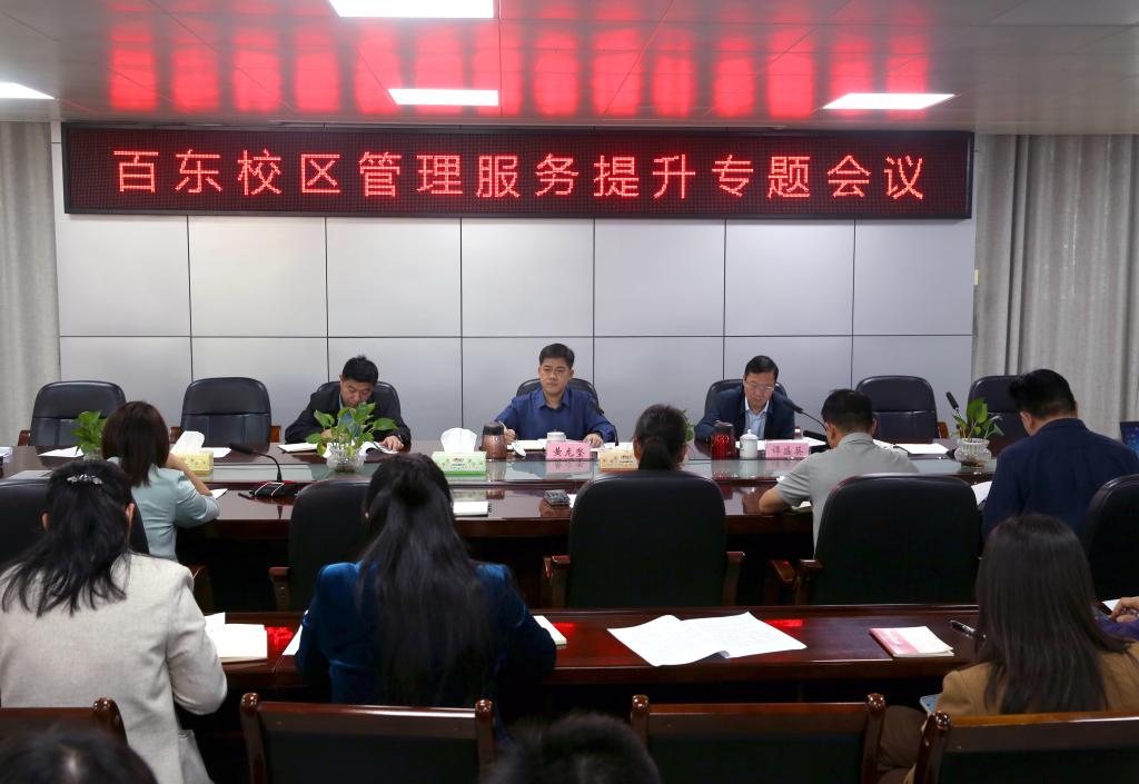 就进一步有效提升百东校区管理服务水平,黄龙坚强调,要强化协同联动,构建高效管理服务体系;聚焦师生需求,提升管理服务精细化水平;加强文化建设,筑牢安全防线,营造和谐育人氛围;深化智慧校园建设,赋能管理服务提质增效。要进一步提高政治站位、压实工作责任,认真梳理职责清单、细化工作举措,以问题为导向、以实效为目标,强化协同配合、勇于担当作为,以更加务实的作风、更加有力的举措,补齐短板、提质增效,共同推动百东校区各项事业发展再上新台阶,为学校高质量发展作出新的更大贡献。