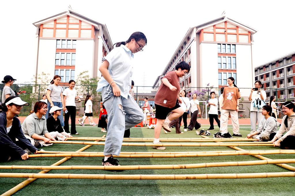 活动现场设置五色糯米饭、艾叶糍粑、茶叶蛋、养生茶等特色美食体验区,以及急救技能挑战、护牙知识闯关、抛绣球、竹竿舞、高脚竞速、滚铁环、陀螺、射箭、香囊与麽乜手工制作等十余项民俗与趣味互动项目。同学们积极参与各项活动。24临本11班的杨语嫣接受采访时说道:“我在这次活动中体验到了很多民俗活动,感到很新奇,每个活动都很有民族特色,这让我更加了解了我国的多元文化,也增强了民族团结的意识。”