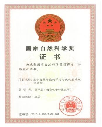 海量、高维、非结构化信息处理中的优化与学习问题一直是国际学术界公认的难题,焦李成教授带领团队攻坚克难,系统地提出了免疫进化优化理论框架与协同进化优化框架,在这一领域取得了一批原创性的、填补国际空白的学术成果。他提出多子波网络模型与多尺度稀疏核学习机理论,解决了非结构化数据的多分辨逼近难题,成功实现了海量小样本数据的学习与识别;提出了免疫协同进化计算模型与多智能体协同进化模型,实现了非结构化海量数据学习中的高效优化,在千万级海量数据分类、万维以上大规模优化、超大规模集成电路布图等问题上取得了国内外未见报导的成果,成功应用于复杂图像分类和目标识别以及网络数据分析等问题。这一系列“基于自然智能的学习与优化基础理论研究”在2013年获得了国家自然科学奖二等奖。