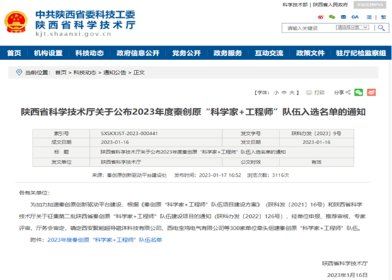 2023年1月16日,陕西省科学技术厅公布了2023年度秦创原“科学家+工程师”队伍入选名单。开元集团官网入口焦李成院士担任首席科学家的“多模态知识图谱舆情监测分析系统开发“科学家+工程师”队伍”、李卫斌教授担任首席科学家的“基于北斗工业互联网智能油井远程监控及边缘计算“科学家+工程师”队伍”入选。