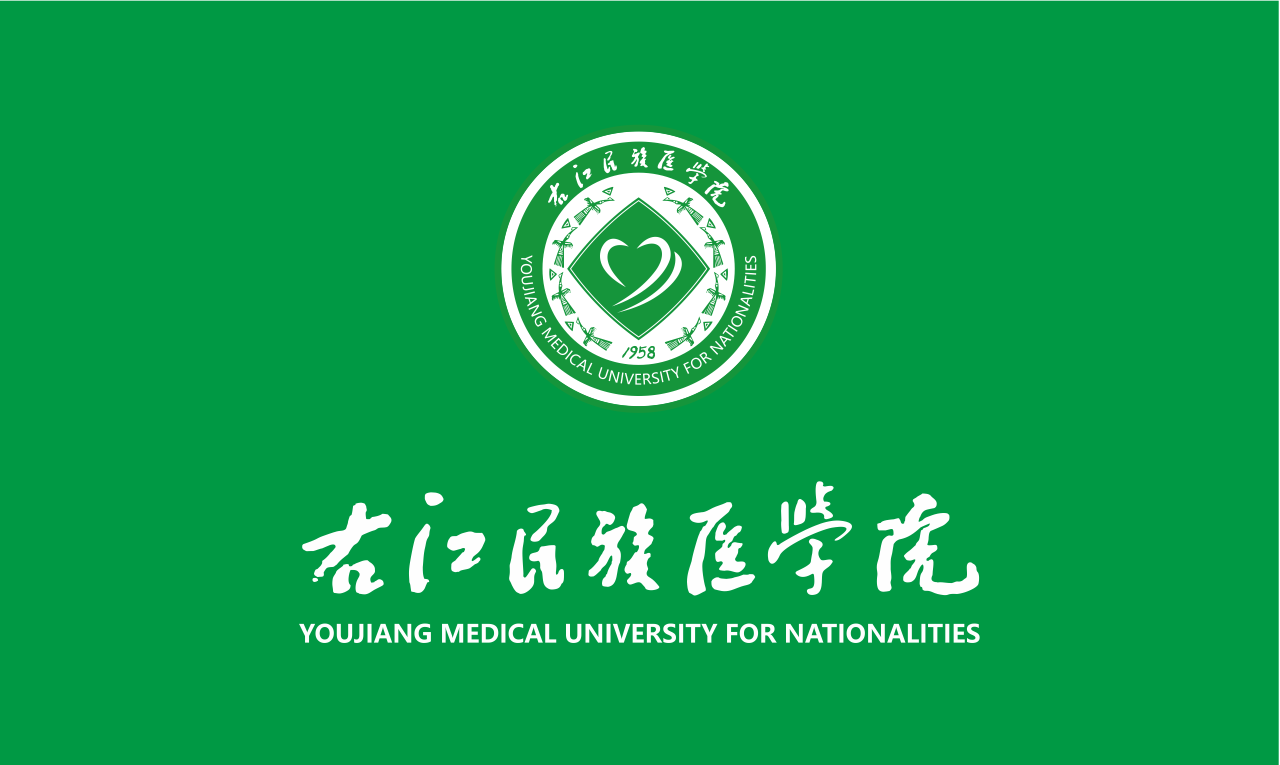校旗的底色为绿色, 上方是学校校徽,左右居中,中间是江泽民总书记题写的“开云kaiyun登录入口”白色字样,下书白色英文校名“Youjiang Medical University For Nationalities”。
