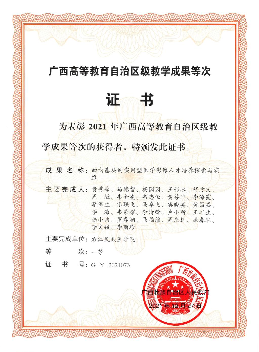 2020年以来,在团队负责人带领和团队教师共同努力下,获自治区级教学改革项目15项、校级教改项目7项,发表教学研究论文54篇,出版教材和著作9部,获校级教学成果奖5项,获省级教学成果奖2项;获广西教学名师1人、校级教学名师2人、自治区级课程思政教学名师1 人;获自治区级课程思政教学团队1 个,获校级最美教育工作者、最美教师、教学能手等荣誉称号12项;教师获校级各类教学比赛奖11项、教师指导学生获校级比赛奖11项;《局部解剖学》2020年获自治区级一流本科课程,2021年获广西普通本科高校课程思政示范课程,2023年获国家级一流本科课程。