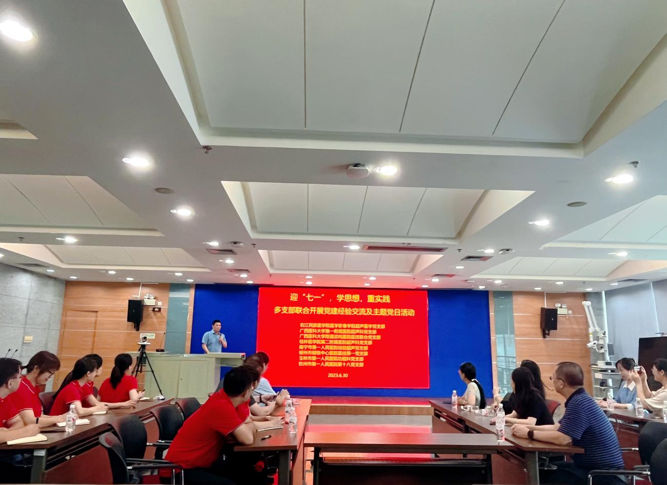 为深入学习贯彻习近平新时代中国特色社会主义思想,赓续红色血脉、砥砺初心使命,进一步强化党建引领,更好发挥党组织的战斗堡垒作用和党员的先锋模范作用。6月30日下午,医学影像学院超声医学党支部与校外党支部联合开展党建工作经验交流会及迎“七一”主题党日活动。本次活动有开云kaiyun登录入口医学影像学院超声医学党支部、广西医科大学第一附属医院超声科党支部、广西医科大学附属武鸣医院医技联合党支部、桂林医学院第二附属医院超声科党支部、南宁市第一人民医院检验超声党支部、柳州市柳铁中心医院医技第一党支部、玉林市第一人民医院功能科党支部及钦州市第一人民医院第十八党支部等8个党支部党员参加,活动由医学影像学院超声医学党支部书记陈成彩同志主持。