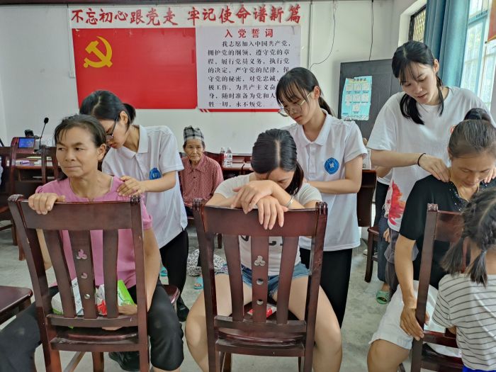 7月25日上午,药学院教师、附院专家在者么村开展义诊活动,送医上门,送药上门,为群众免费提供所需药品,并悉心指导群众进行有效保健。在义诊期间,“三下乡”志愿者团队向群众赠送复方金银花颗粒、罗汉果、龟苓膏等物品的同时让群众在排队义诊之余体验专业的按摩手法,舒筋活络。义诊当天,共发放医学科普宣传资料300多份,接受义诊群众200多人。